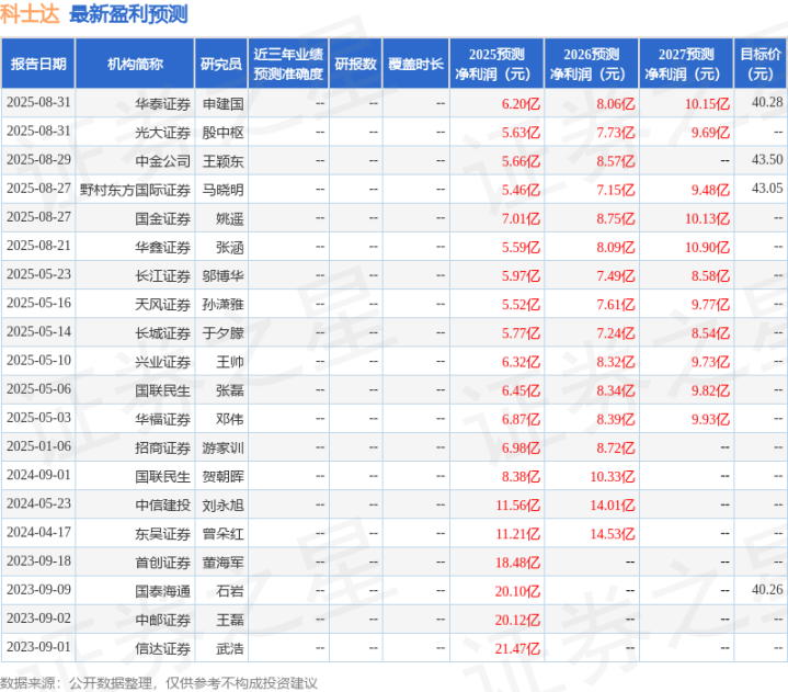 最新盈利预测明细如下: